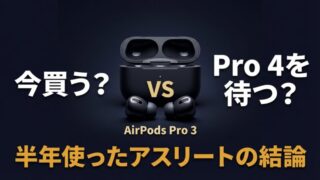 P3:装備 AirPods Pro 3を今買うべきか、Pro 4を待つべきか?半年使ったプロアスリートが本音で解説 AirPods Pro 3を今買うべきか、Pro 4を待つべきか?半年使い込んだプロアスリートがリーク情報を分析し、買い時を本音で解説。IRカメラ・H3チップの噂も徹底整理。 2026.04.02 P3:装備
