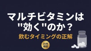 体(BODY) マルチビタミンは”効く”のか?|飲むタイミングの正解 マルチビタミンは効果があるのか、いつ飲むのが正解か。21,442人のCOSMOS試験と覆面アスリート20年の実体験から「食事が乱れた日の保険」としての正しい使い方を解説。吸収率より継続率で選ぶ理由とは。 2026.04.21 体(BODY)