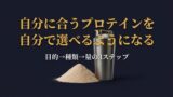 自分に合ったプロテインの選び方がわからない場合は、プロテインの選び方ガイドで「目的→種類→量」の3ステップを解説しています。